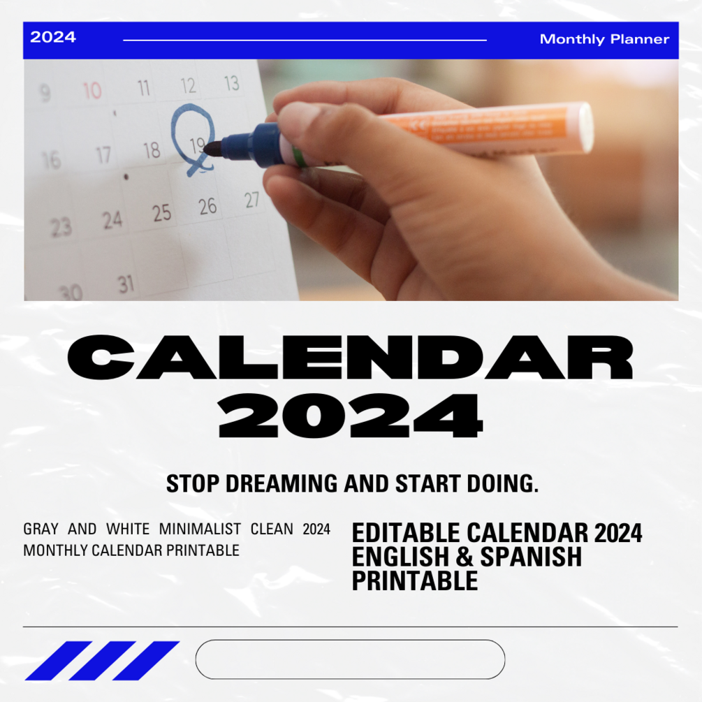 Editable Calendar 2024 - English Printable and Digital Calendars